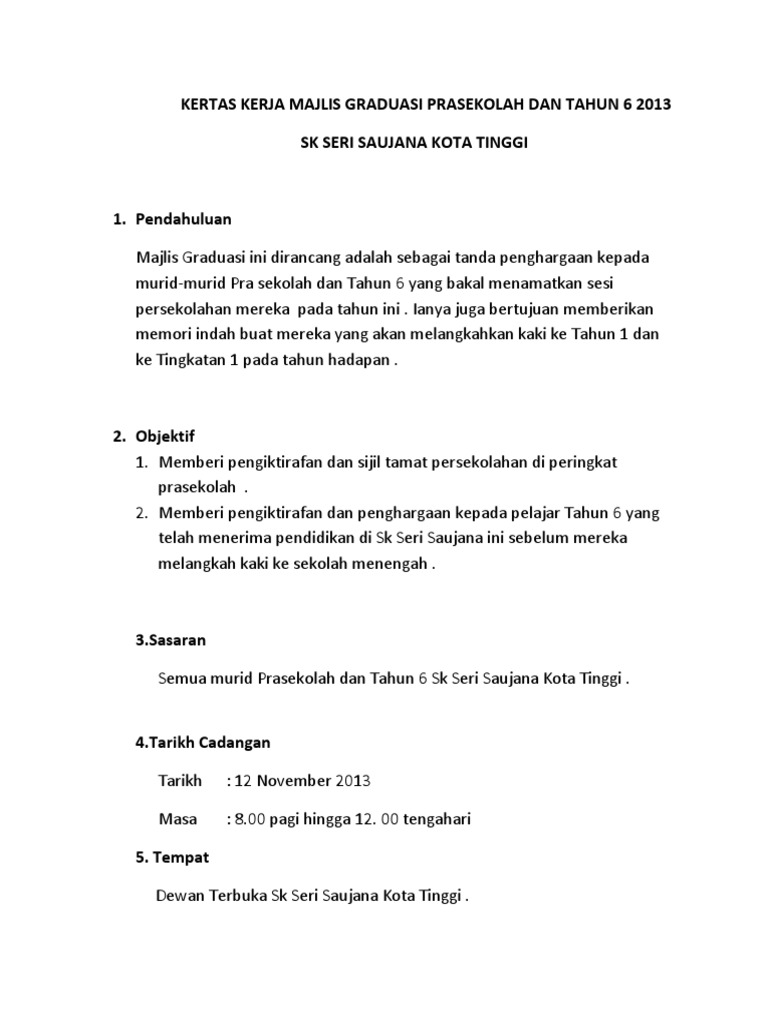Program Konvokesyen Murid Prasekolah Tunas Cemerlang SK sultan Abu Bakar 1 ini merupakan satu program pengiktirafan kepada pelajar Prasekolah yang menamatkan sesi. Nama penuh contoh surat memohon kerja nama penuh. Kertas kerja konvokesyen prasekolah doc document.